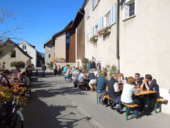 Jedes Wochenende von April bis Oktober öffnet ein Maienfelder Winzer ab 11 Uhr seine Tore und bietet Platz für Gemütlichkeit.